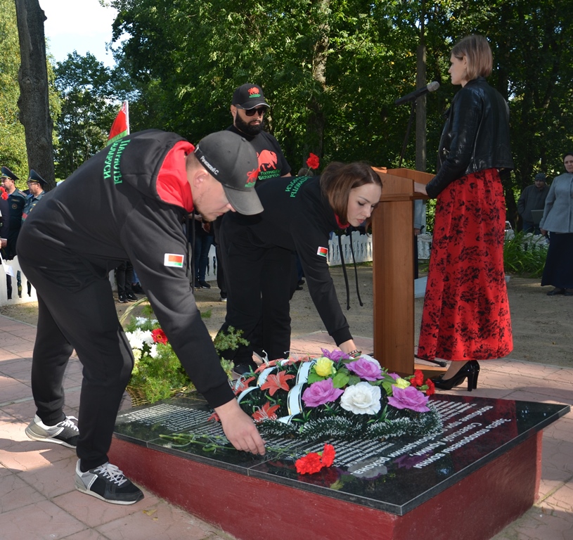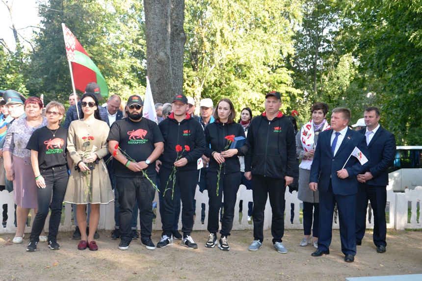 В завершение митинга его участники возложили цветы к братской могиле, после чего колонна для передачи эстафеты «Символ единства» двинулась в Ушачский район.