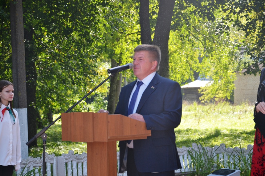 С приветственным словом к присутствующим обратился председатель районного Совета депутатов Г. М. Шведов. Геннадий Михайлович поблагодарил всех за сохранение памяти о подвиге наших дедов и прадедов в годы Великой Отечественной войны, отметив, что накануне первого в истории суверенной Беларуси Дня народного единства эта встреча приобретает особый смысл. Объединив мужество и героическое прошлое нашего народа, она становится ярким свидетельством самоотверженной любви к Родине, напоминаем о необходимости мирным трудом укреплять свой родной край, делать его краше и богаче.