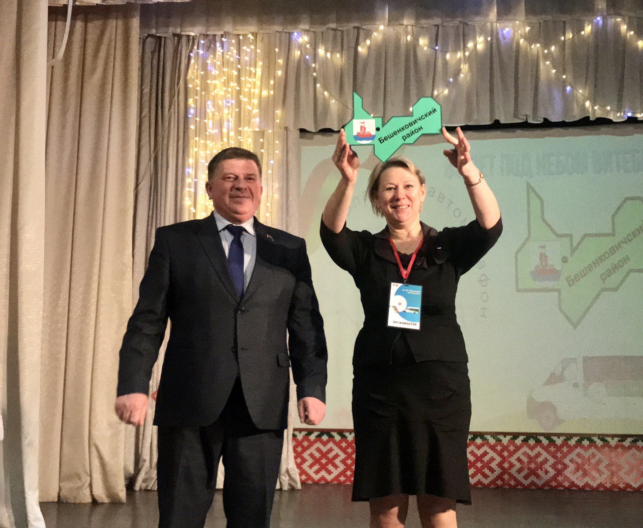 Во время торжества участникам автомарафона передали часть карты Бешенковичского района для напольной спилскарты, а также сведения о придвинском крае для книги Витебской области, презентация которой состоится 17 февраля в Концертном зале ”Витебск“ в рамках церемонии чествования лауреатов звания ”Человек года Витебщины“.