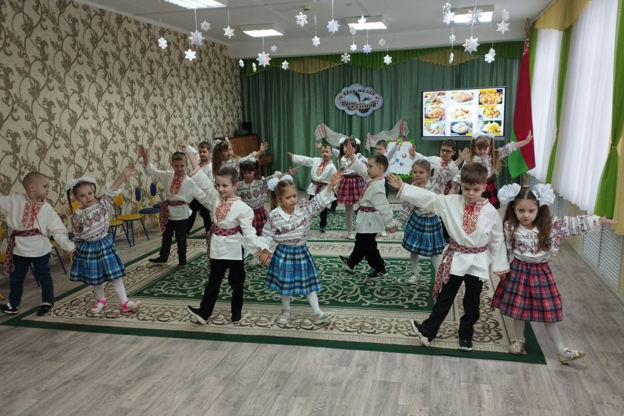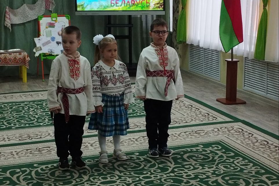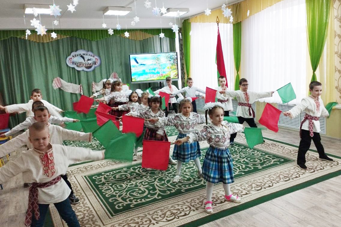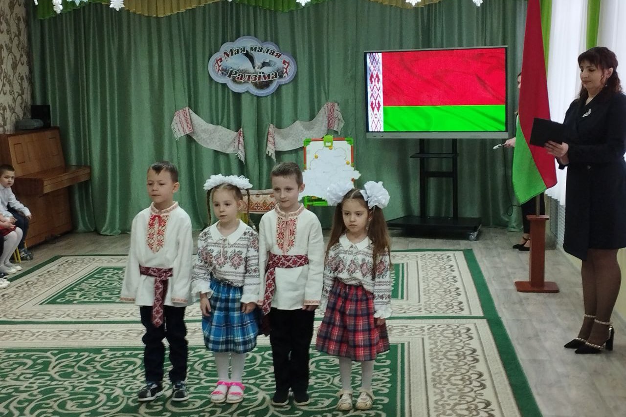 Дети исполнили гимн Республики Беларусь, используя загадки, картинки, песни и танцы, рассказали о важных символах своей страны, таких как аист, василек, орнамент, зубр, Беловежская пуща, Брестская крепость-герой и другие. Почтили минутой молчания память погибших в Великой Отечественной войне.