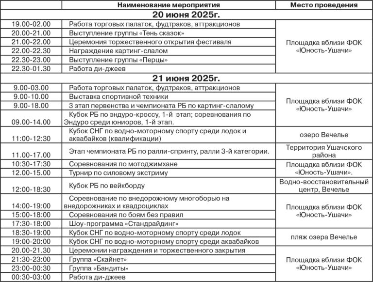 Программа фестиваля экстремальных видов спорта «ЭкстримПрорыв» в УшачахAuthorАвторГазета ЗараОпубликовано20.06.202509:50Обновлено09:53VKOntakteTelegramEmailShare this postShare this postClose sharing boxПрограмма фестиваля экстремальных видов спорта «ЭкстримПрорыв» в УшачахVKOntakteTelegramEmailОпубликовано: Газета Зара 20.06.2025. 09:53Программа фестиваля экстремальных видов спорта «ЭкстримПрорыв» в Ушачах progr 768×582 1 076 768×528 1 800 768×528 1 842 768×528 1 Просмотров: 3 104