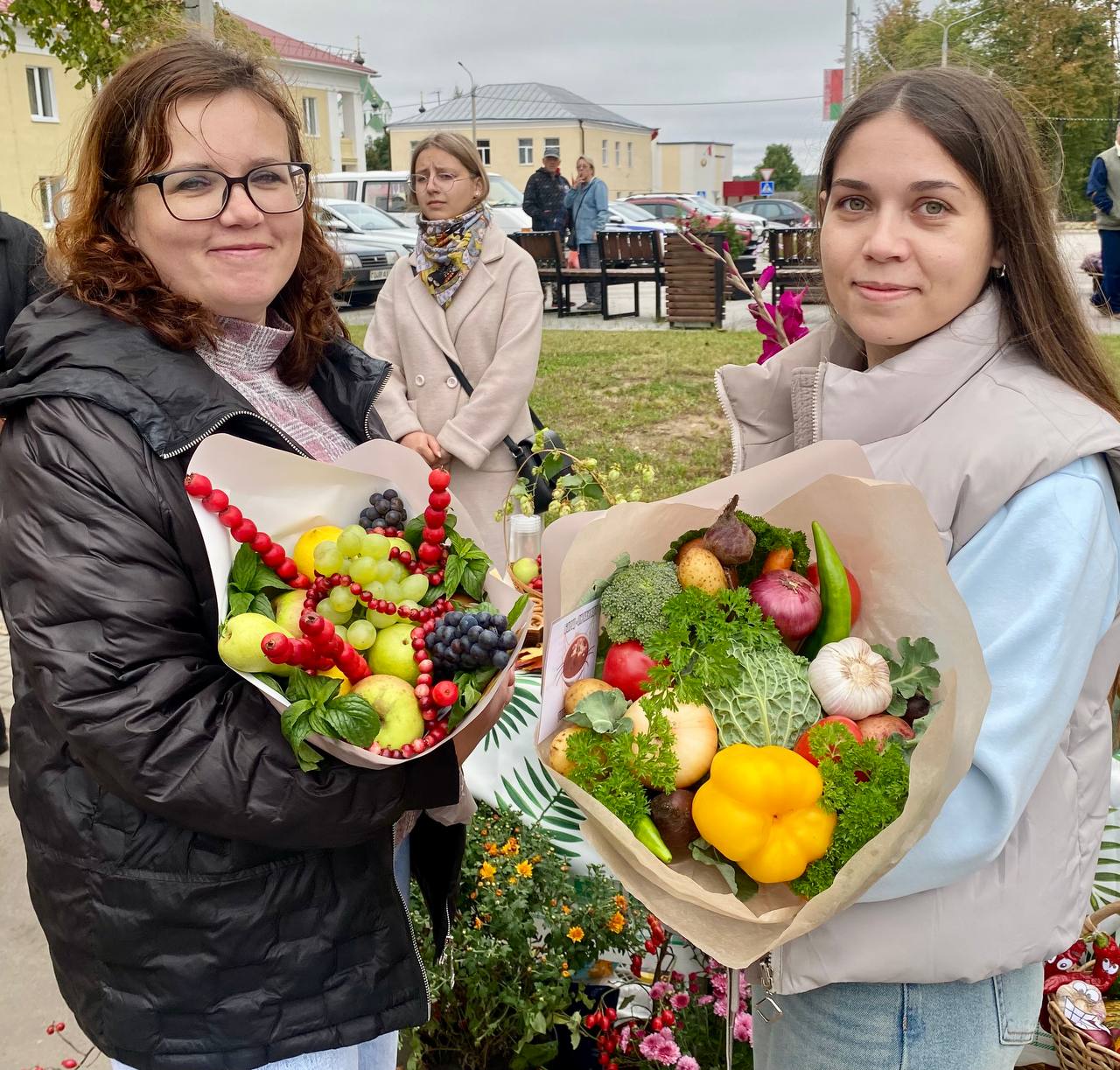 Площадка напротив почты с самого утра превратилась в настоящий торговый центр. Здесь со своей продукцией и товарами расположились сельхозпредприятия, фермерские хозяйства, потребительская кооперация и граждане, вырастившие овощи и фрукты на своих участках.