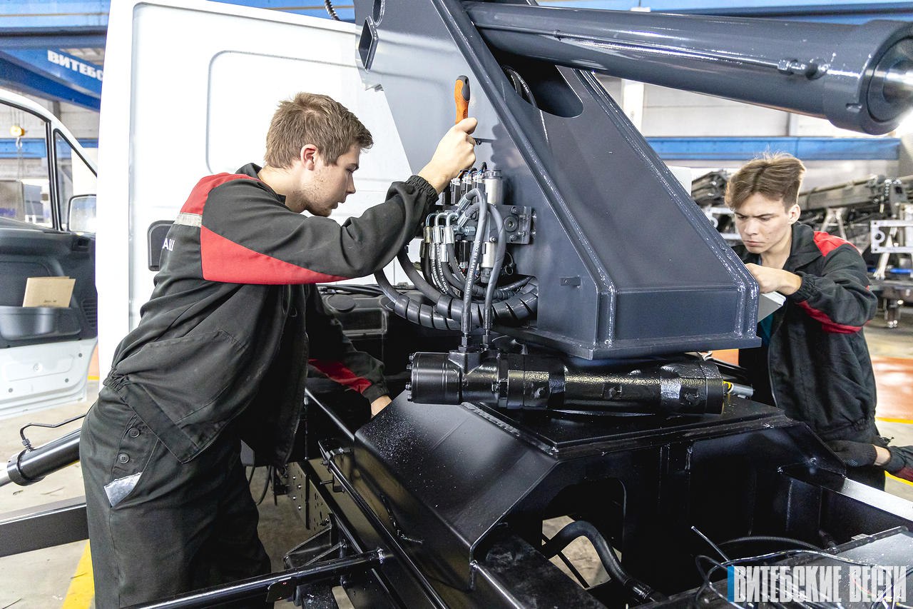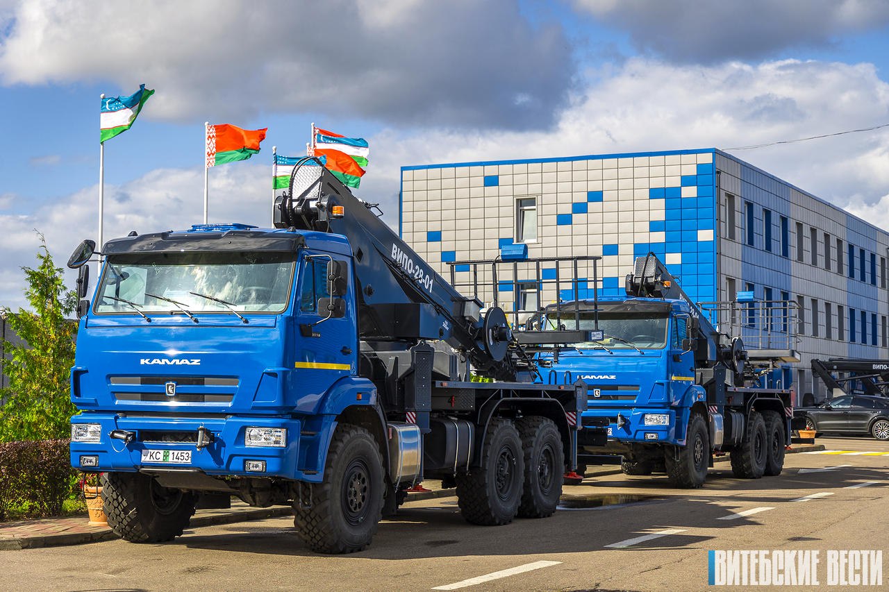 Кроме многопрофильной грузоподъемной техники, раз в год с конвейера ЧУП «Витстройтехмаш» сходит знаменитый автогидроподъемник высотой 56 метров.