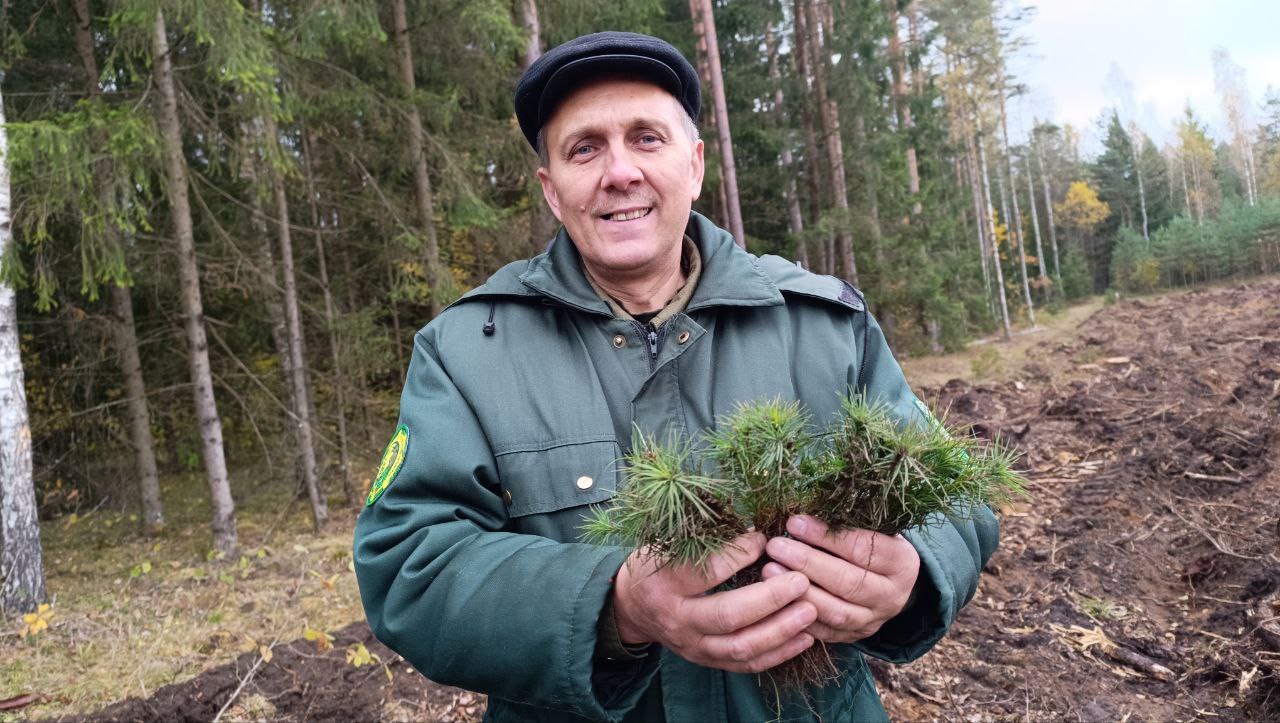 Лесничий Задвинского лесничества Бешенковичского лесхоза Владимир Аглушевич поделился историями трудовых будней: рассказал о технологиях высадки саженцев и ухода за лесом, провел необходимый инструктаж. Вооружившись мечами Колесова и саженцами сосны однолетки, по примеру Николая Серебро, который продемонстрировал, как правильно управляться с оборудованием, приступили к работе.