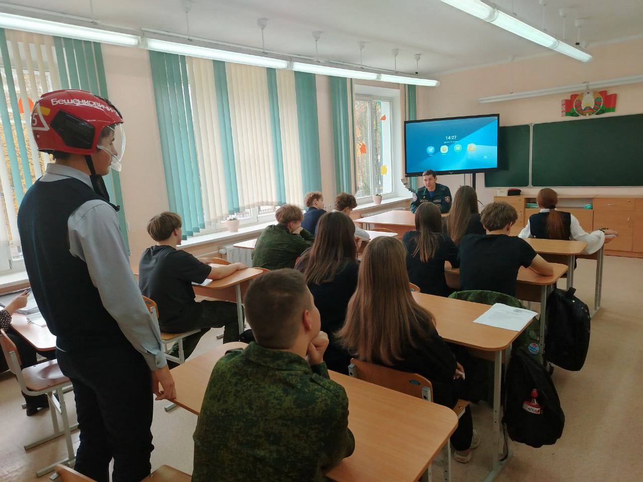 Учащиеся смогли в неформальной обстановке пообщаться с теми, кто каждый день тушит пожары и спасает жизни, и даже примерить боевую экипировку.