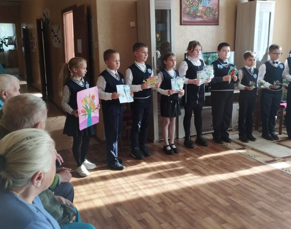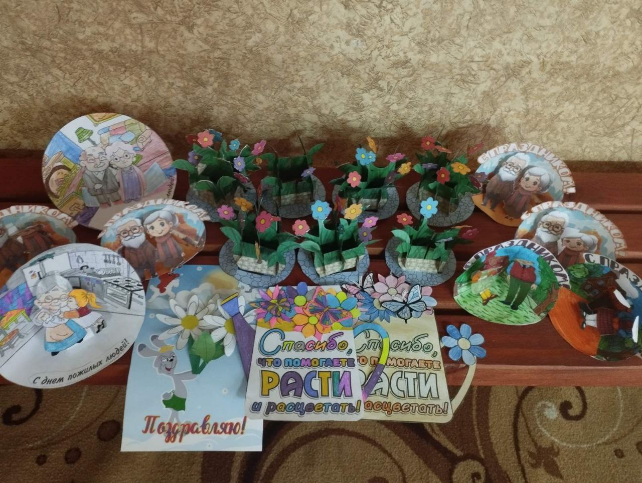 Чуть ранее учащиеся этой школы дарили постояльцам отделения круглосуточного пребывания ТЦСОН открытки, созданные своими руками.