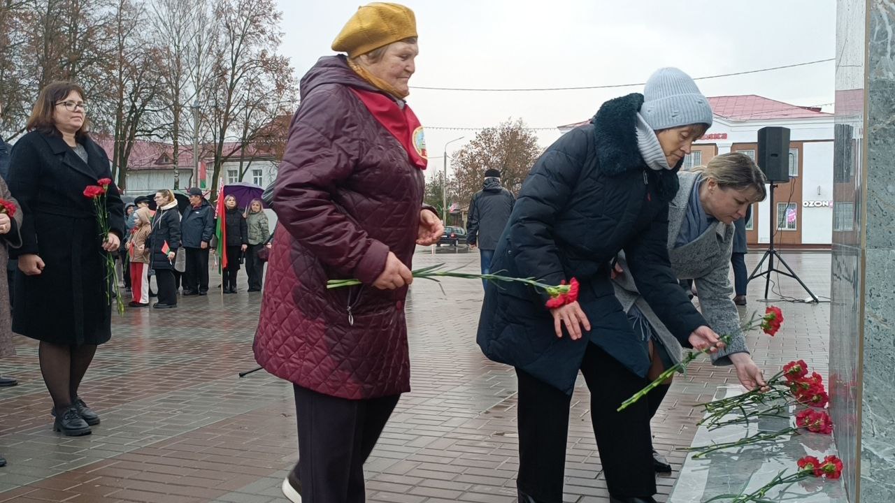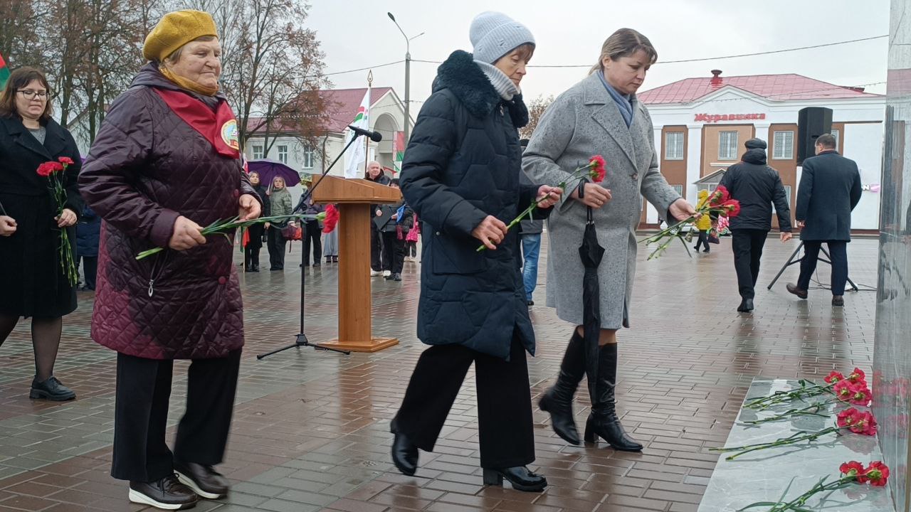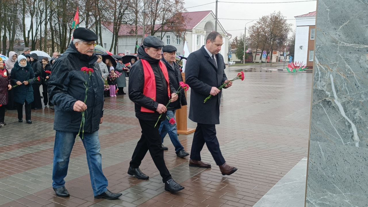 Участие в мероприятии приняли представители местной вертикали власти, депутатского корпуса, трудовых коллективов, активисты общественных объединений, школьники… С памятной датой земляков поздравили заместитель председателя райисполкома Александр Ерашов и секретарь районной организации Коммунистической партии Беларуси Любовь Григорович. Как дань памяти и уважения к человеку, изменившему ход истории, земляки возложили к подножью монумента цветы.