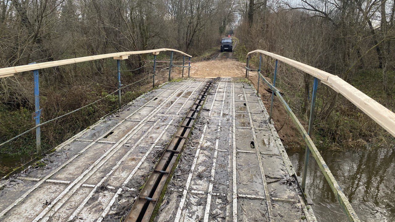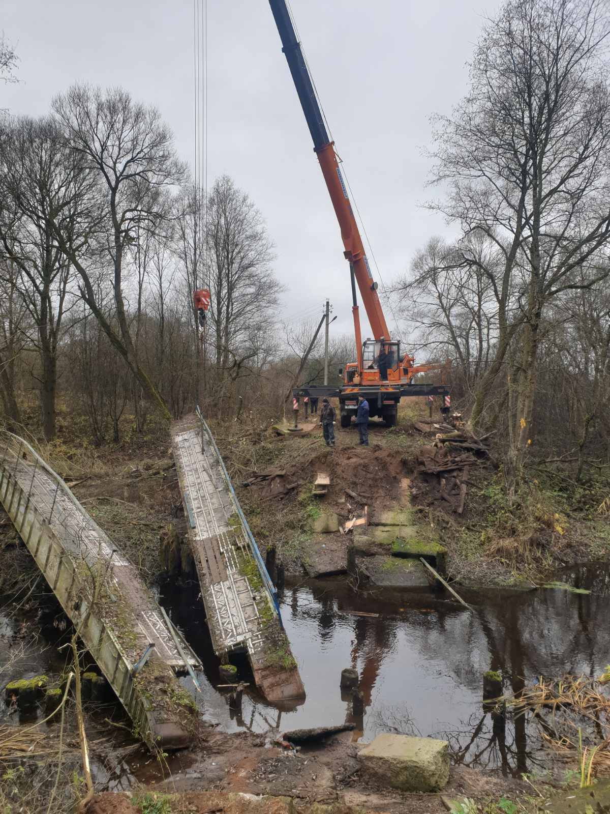 В один из ноябрьских дней в Челнышках высадился большой трудовой десант из числа представителей ПМК‑41, района газоснабжения, ПМС, ДРСУ‑110 и лесхоза. Мост частично разобрали, с помощью крана подняли конструкцию (о том, чтобы техника смогла подъехать к месту работы, позаботились энергетики, на время сняв провода линий электропередачи). Укрепили опоры и произвели подсыпку. Части металлического полотна надежно скрепили сваркой, обновили и перила. Одним словом, сделали мост безопасным для передвижения.