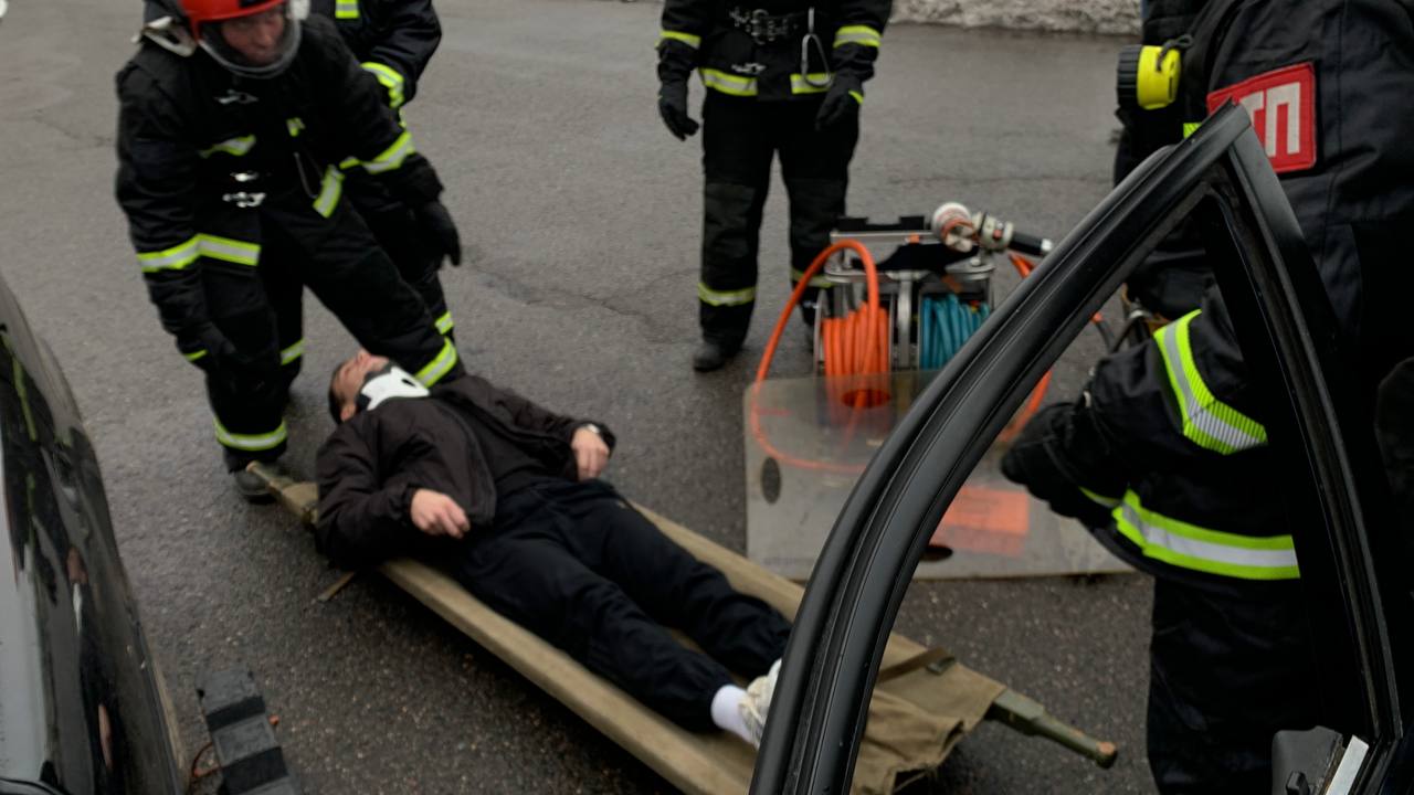 Сценарий учений максимально приближен к реальности: водитель и пассажиры «зажаты деформированным металлом», доступ к ним ограничен, а время работает против пострадавших.