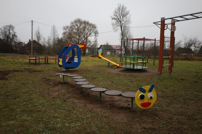 Детский игровой комплекс — один из пяти, установленных в агрогородках района, а затем и спортивная площадка «поселились» здесь раньше. А недавно комплекс прирос дополнительными элементами — качалкой, скамейкой, качелями, дорожкой…