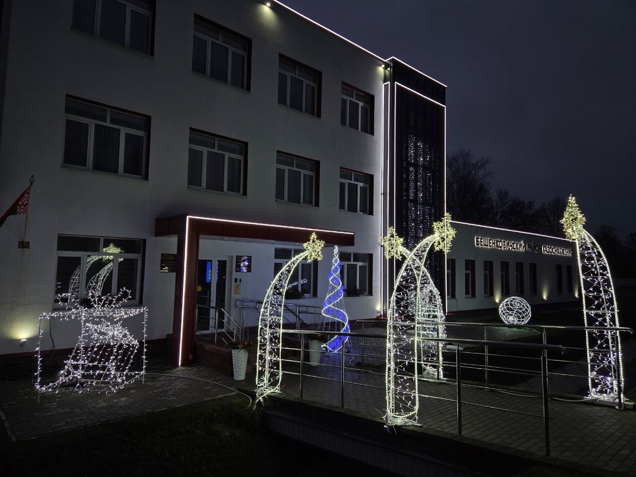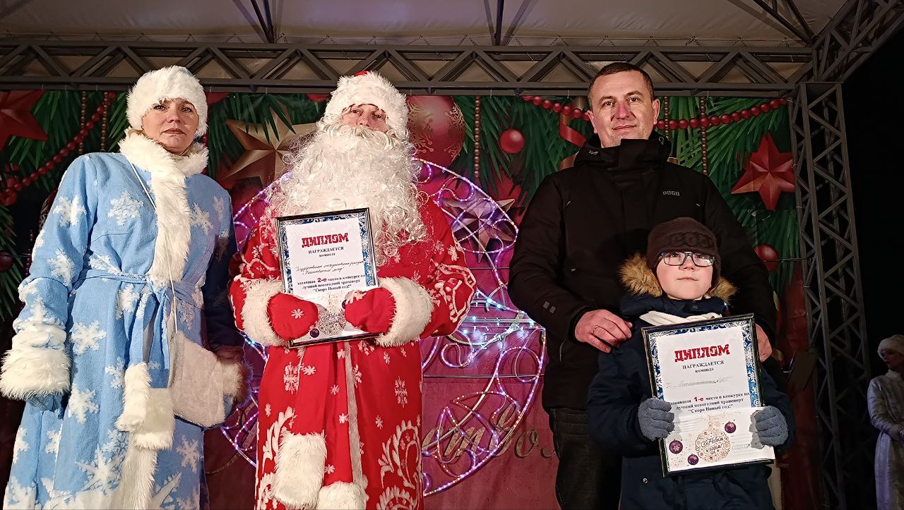 На главной сцене названы победители конкурса среди организаций и предприятий на лучшее новогоднее оформление здания и прилегающей территории. Победу одержал коллектив детского сада №6 райцентра, 2-е место — у Бешенковичского РГС, 3-е — СШ №2 г. п. Бешенковичи имени М. Н. Ткаченко.