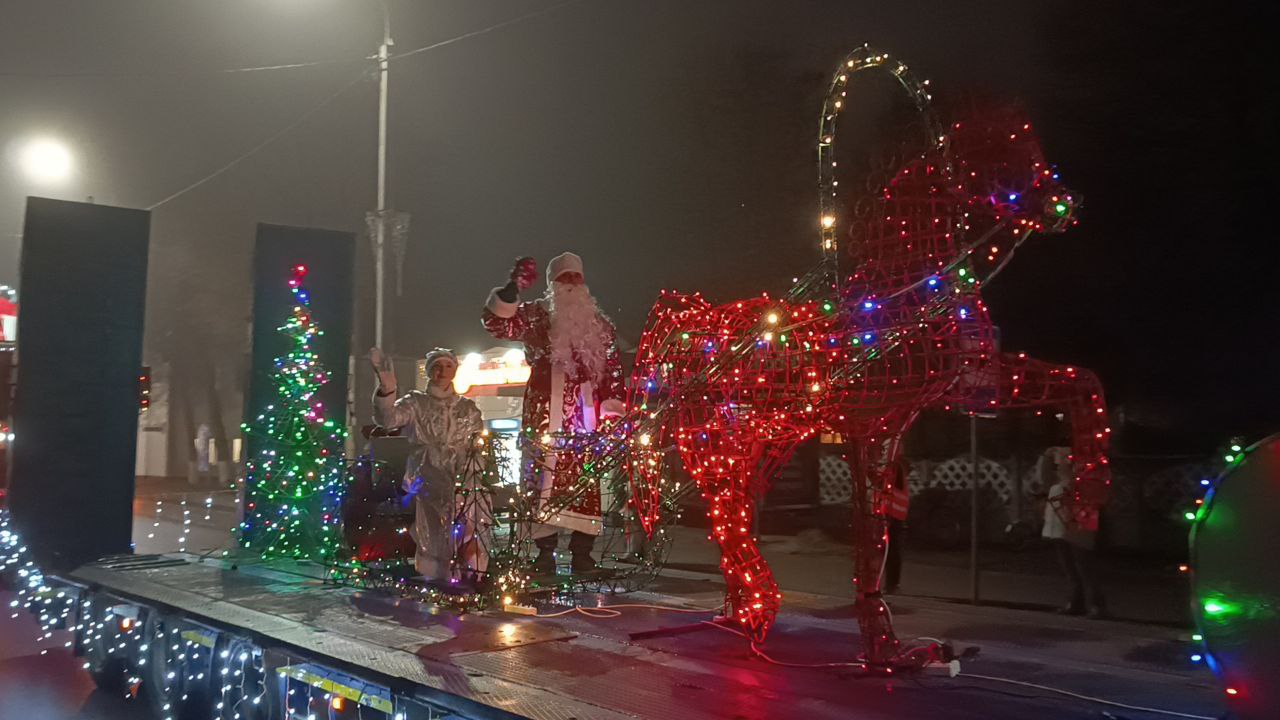 Открыл мероприятие парад новогоднего транспорта. Масштабный, зрелищный автопоезд проехал от центральной площади до школы искусств, удивив и порадовав земляков атмосферой сказки и волшебства. Тем временем сиял огнями и центральный парк горпоселка. Как и обещали труженики коммунальной службы, здесь земляков ждал кусочек звездного неба. Особенно восхищались, шагая по аллее света, ребятишки.