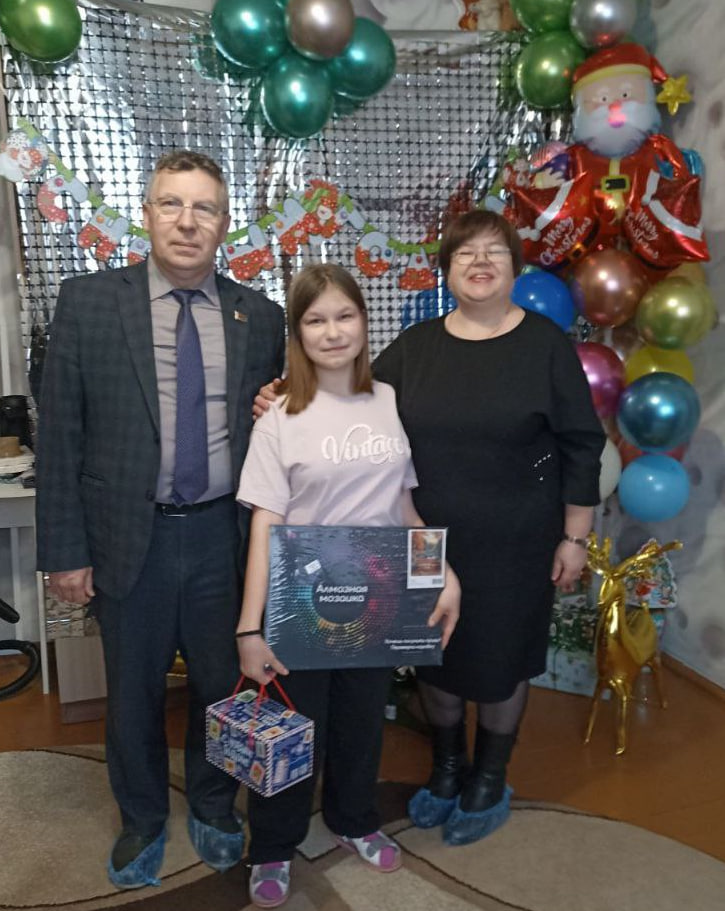 А к юной жительнице агрогородка Бочейково с подарками и наилучшими пожеланиями приехали руководители финансового отдела и управления по труду райисполкома Александр Ткаченок и Елена Овчинникова.