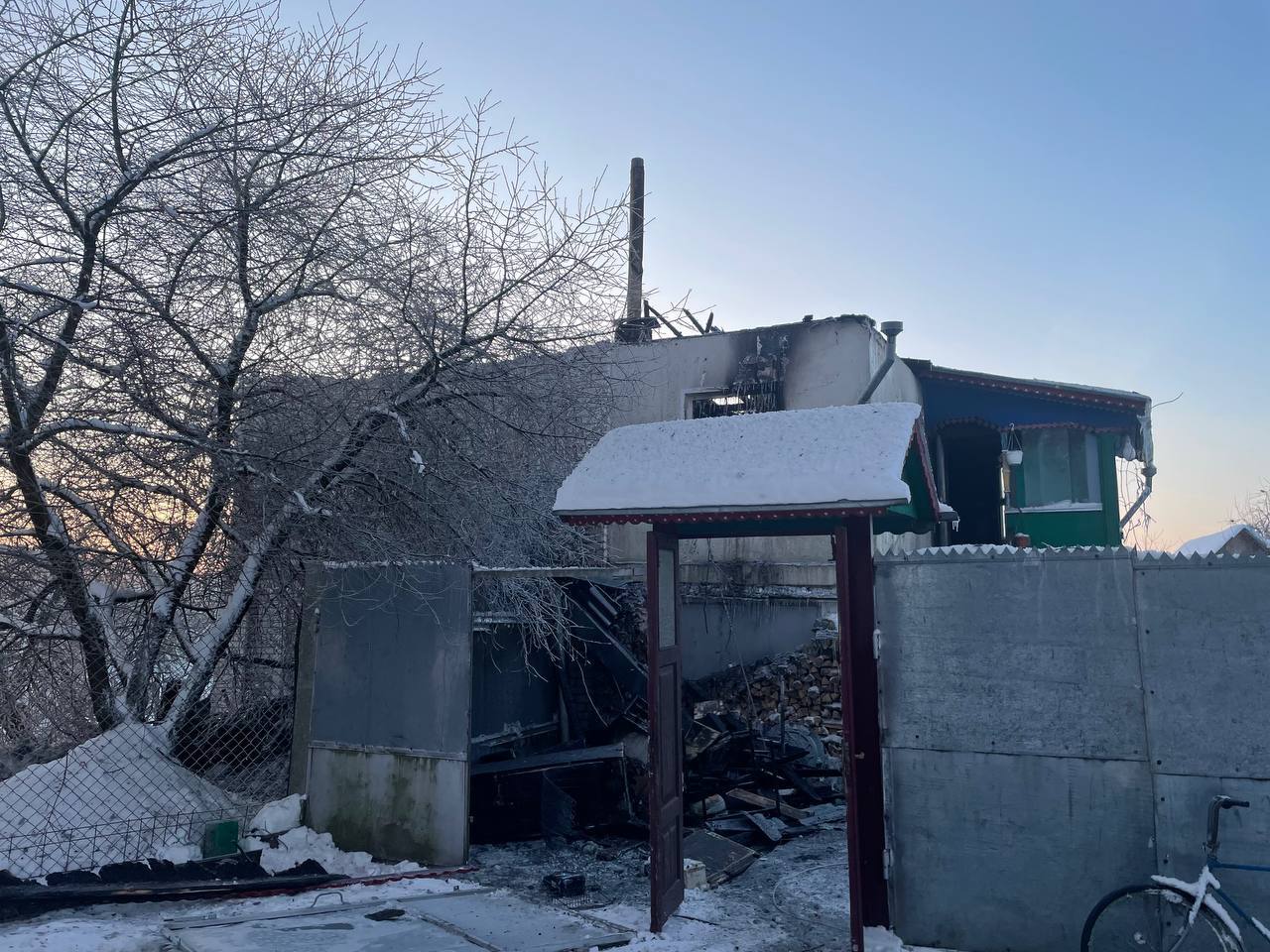 По прибытии подразделений МЧС происходило открытое горение дома. Огнем уничтожена кровля, потолочное перекрытие и имущество, повреждены стены и перегородки.