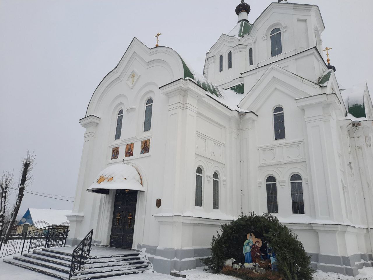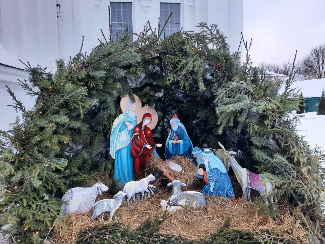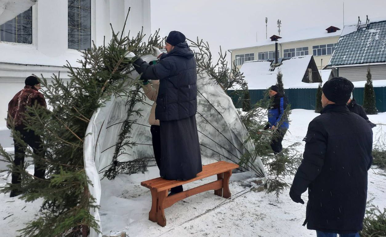 А у входа в храм появился Рождественский вертеп. О нем позаботились верующие вместе с благочинным церквей Бешенковичского округа.