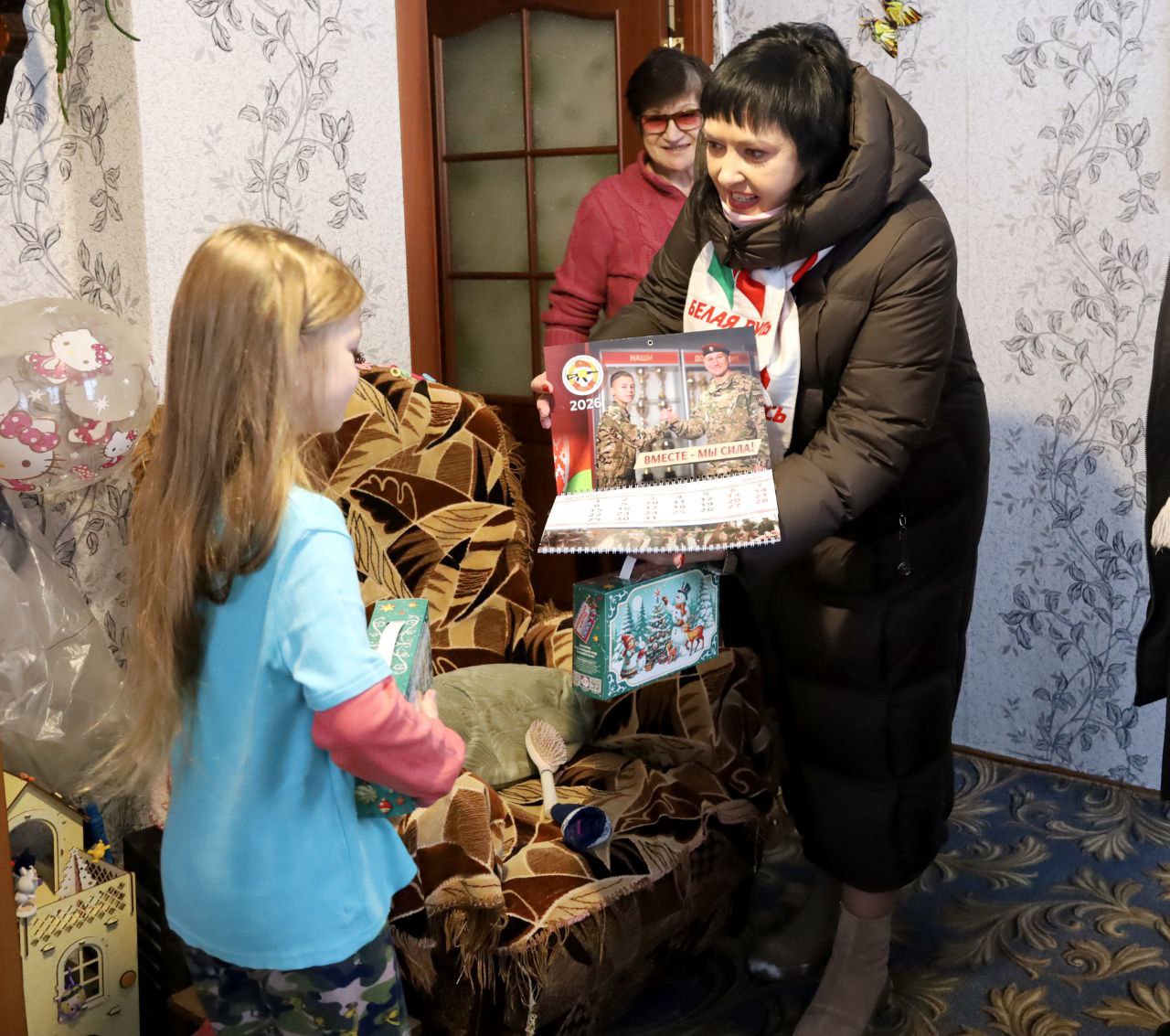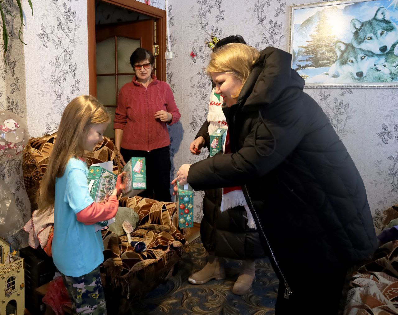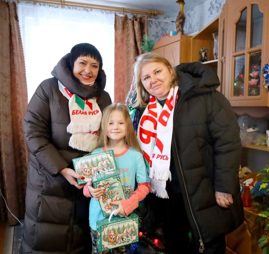 В канун Нового года, председатель Бешенковичской районной организации РОО «Белая Русь» Ольга Фиешко и ее заместитель Ольга Красакова в рамках благотворительной акции «Наши дети» побывали в деревне Добригоры, чтобы поздравить с праздником первоклассницу СШ №1 г. п. Бешенковичи имени И. И. Строчко Злату Шипулю и ее брата Кирилла.